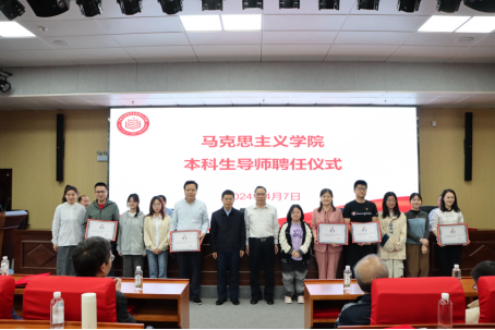 聘任仪式上,邓国彬与李玉雄分别为青年教师导师、本科生导师颁发青年教师导师聘任证书、本科生导师聘任书,并合影留念。
