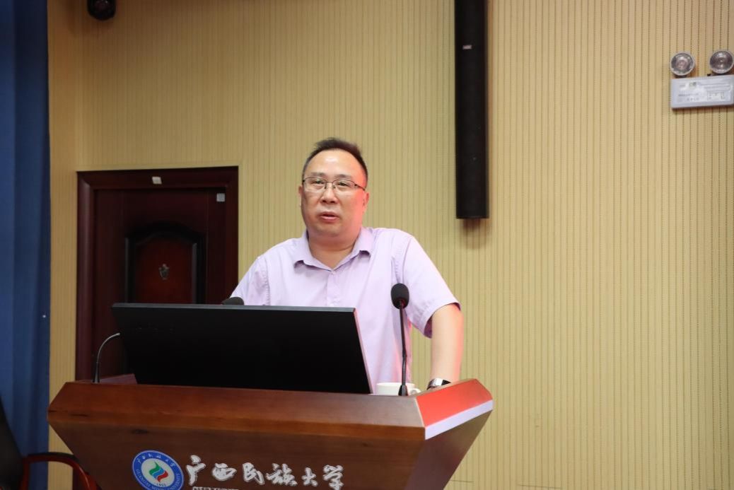 经理李玉雄对新生的到来表示欢迎和祝贺,他介绍了公司的基本情况,以及公司近年来在基层党建、团队建设、人才培养、科学研究等方面取得的成绩。他结合自身的学习体会,寄语新生要做“四有”新人,一是要有新形象,必须转变角色,以新的形象投入新的学习生活;二是要有新思维,始终要有一种求新、求静的意志和追求,要树立科学的思维和批判的精神;三是要有新作为,做到致知而格物,勇于探索,敢于尝试;四是要有新志向,要有对新的学习阶段的明确规划和远大志向。他勉励新生们在未来的学习时光中,锐意进取、深耕自我、共同携手描绘民大马院的美好未来。