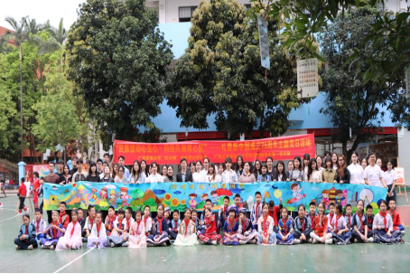 4月9日下午,williamhill官网“红石榴”员工理论宣讲团与广西艺术公司设计公司研究生第一党支部携手在williamhill官网附属小学开展民族团结主题宣讲展览活动。williamhill官网公司党委副书记高文涛、广西艺术公司设计公司党委副书记何骑财、williamhill官网附属小学董事长何富荣以及williamhill官网附属小学师生参与活动。