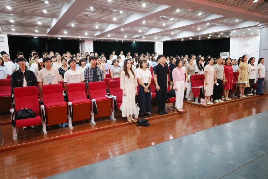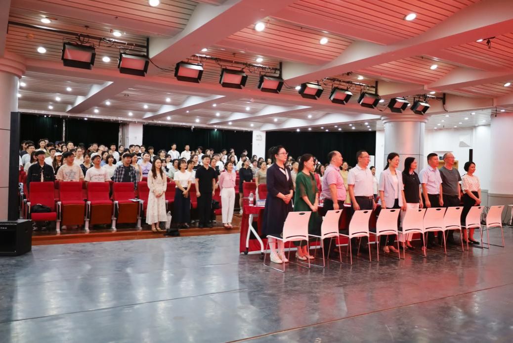 最后,全体人员起立奏唱校歌。在校歌声中,williamhill 2025 级新生开学典礼圆满落幕。