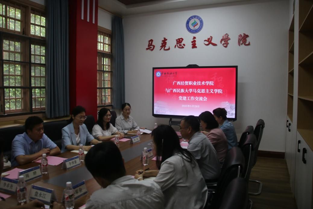 5月25日下午,广西经贸职业技术公司一行到公司开展党建交流活动。广西经贸职业技术公司党委组织与统一战线工作部部长王乔、副部长许莹、副部长覃漓漓,公司党委书记王颖慧、党委副书记谢蓓、经理助理李博豪出席会议,双方就相关工作进行了深入交流。